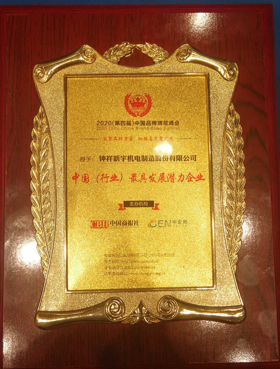 鐘祥新宇機電制造股份有限公司由于銳意創(chuàng)新,品牌影響力取得重大成就在此次中國品牌博鰲峰會上被授予《中國(行業(yè))標(biāo)志品牌》、《中國(行業(yè))最具發(fā)展?jié)摿ζ髽I(yè)》榮譽稱號。