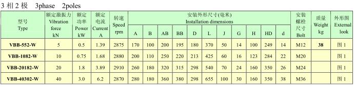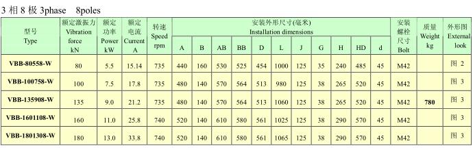 VBB系列隔爆型振動(dòng)電機(jī),功率0.2~13KW,2、4、6、8極,激振力為3~180KN,共計(jì)25個(gè)規(guī)格。
