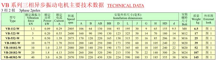 VB系列振動(dòng)電機(jī),功率0.12~25KW,2、4、6、8極,激振力為2.5~300KN,共計(jì)56個(gè)規(guī)格。