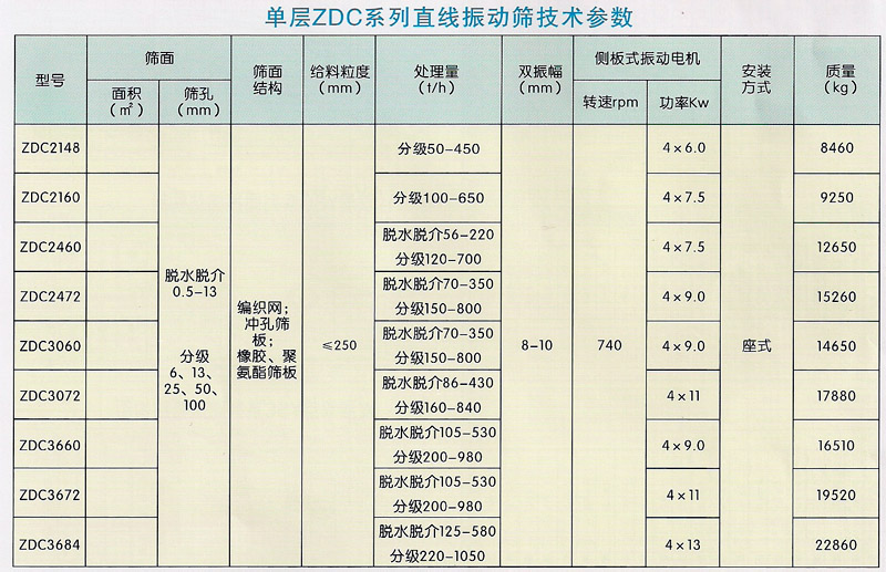 ZDC系列直線振動篩是一種利用側(cè)板式振動電機(jī)為激振源的篩分機(jī)械,廣泛適用于水電、煤炭、冶礦山、建材、化工等行業(yè)對中、粗物料進(jìn)行分級和脫水。